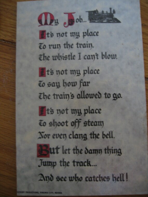 My Job Its Not My Place To Run The Train Vintage 1980 By Lolatrail