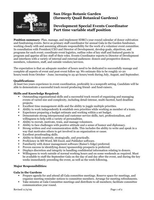 San Diego Botanic Garden Event Coordinator Job Description 11 09