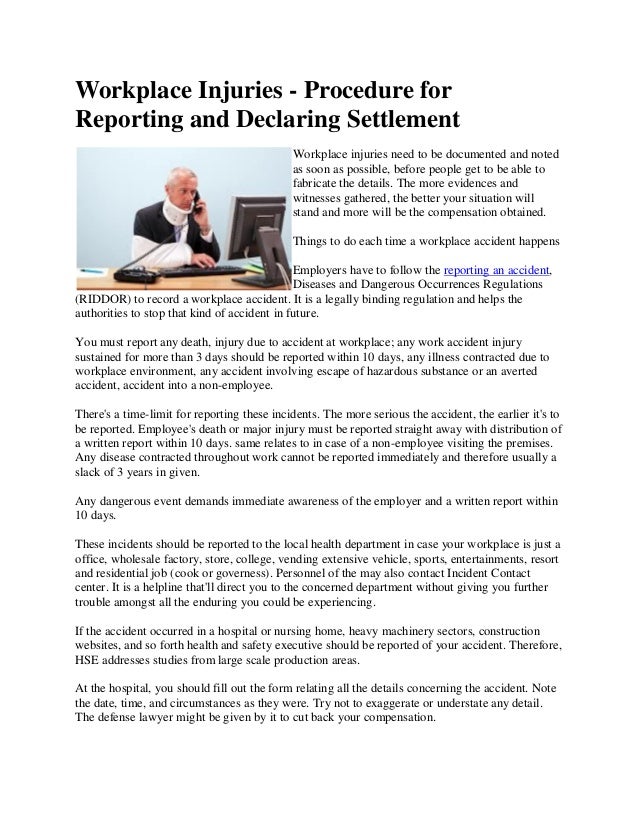 Workplace Injuries Procedure For Reporting And Declaring Settlement