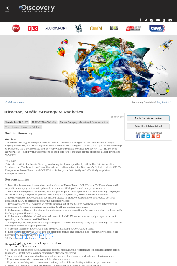 Director Media Strategy Analytics Job At Discovery